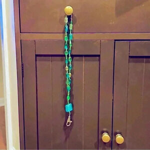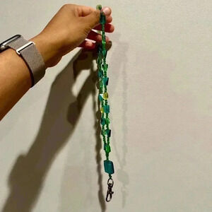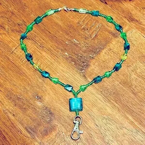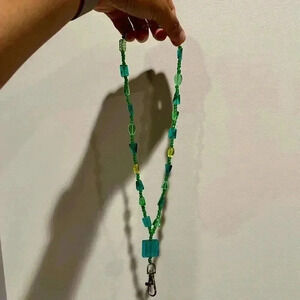 HANDMADE FASHION LANYARD • TURQUOISE, GREEN AND BLUE • BEADED NECKLACE