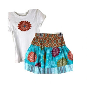 HANDMADE GIRLS SET EUC TOP SHIRT TEE SKIRT TSHIRT SUMMER CASUAL TOPS SIZE S 5 6