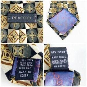 HANDMADE Geometric Silk Necktie - PEACOCK 100% Tie