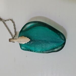 HANDMADE Glass Pendant And Necklace Turquoise Blue White Green
