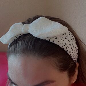 Handmade headband retro style with bow in White & black dots. Item is brand new. Imported. Light weight sturdy material decorated with fabric all over. Measurements: 2"W X 17"L