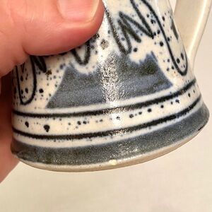 HANDMADE Hage Signed Clay Pottery Mug Complements Blue Willow Decor or Danish Decor. Gorgeous Mug, drip glaze & a rest for thumb pad. The mug has one tiny pinpoint chip, otherwise excellent. A very special, unique mug for yourself or a treasured gift for someone special!