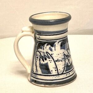 HANDMADE Hage Signed Clay Pottery Mug Blue Willow