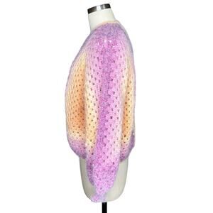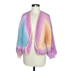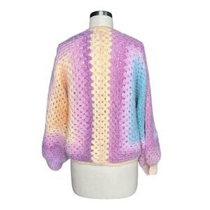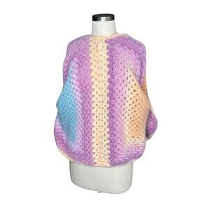 HANDMADE Hand Knit Crochet Colorful Pastel Colorblock Granny Cardigan Sweater