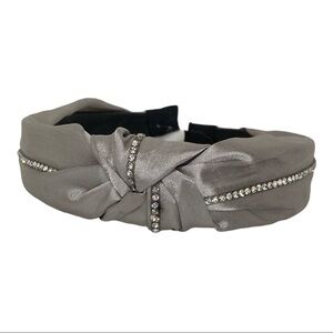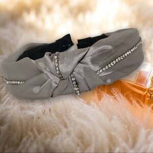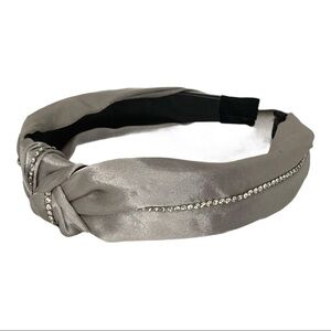 Handmade knotted headband with rhinestone in silver. Item is brand new. Light weight sturdy plastic material cover by a very good quality satin fabric and adorned with rhinestones all across the headband. Measurements: 1.25"W X 15.5" L
