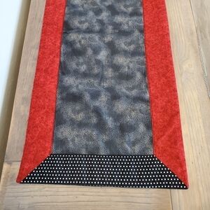 HANDMADE MIXED PRINT BLACK & RED TABLE RUNNER HALLOWEEN