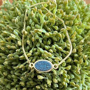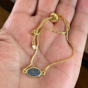 HANDMADE Natural Stone Druzy 18K GP Adjustable Bracelet