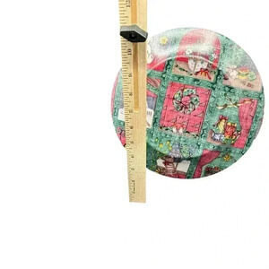 - **Handmade decoupage** glass plate with vintage Christmas designs