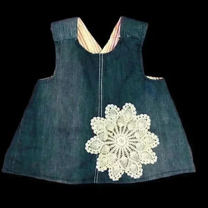 HANDMADE PINAFORE DENIM DOILIE TOP BABY 6-12 MONTHS?