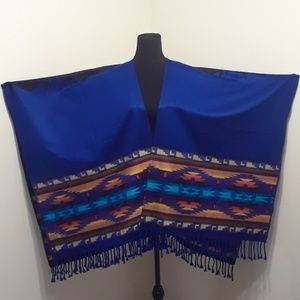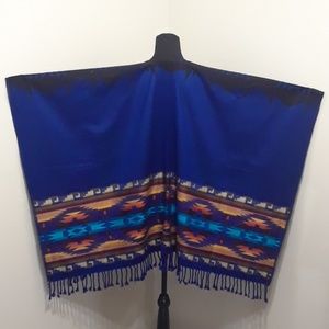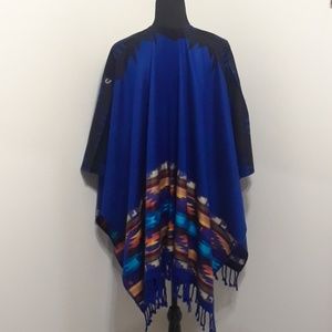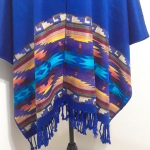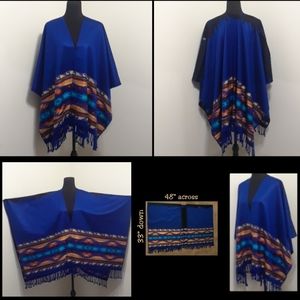 BEAUTIFUL VIBRANT HANDMADE PONCHO/SHAWL - Royal Blue and Black with multicolors, NO matrial content tag inside but feels like polyester, NWOT, NO FLAWS!!