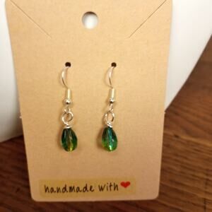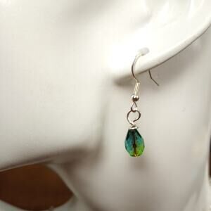 Earrings are a combo of shades of green and Teal in their single drop crystals 1¼" drop