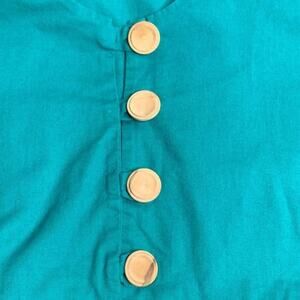 Handmade/Hand-crafted Teal Cotton Mini Dress w/ Wooden Buttons.