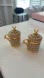 Set of two decorative cups adorned with pearls and gold accents. Perfect for adding a touch of elegance to any space.