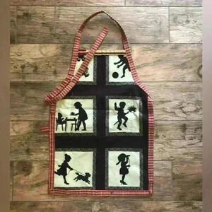 HANDMADE VTG CHILDREN' S APRON CHILDREN PLAYING SHADOWS SILHOUETTES