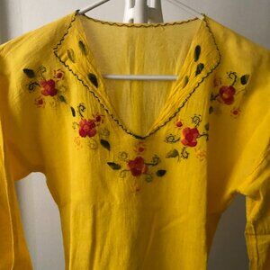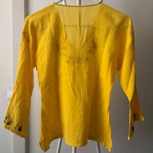 HANDMADE YELLOW BOHO EMBROIDERED MEXICAN TOP LIGHTWEIGHT HANDMADE NWOT