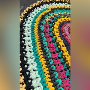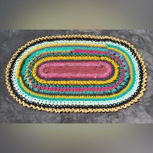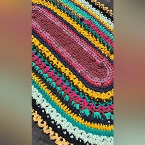 HANDMADE crochet upcycled recycled bohemian multicolor mat Sz 35" by 21