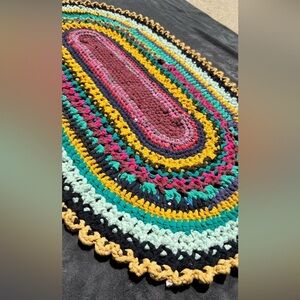 Handmade crochet upcycled recycled bohemian multicolor mat Sz 35" by 21