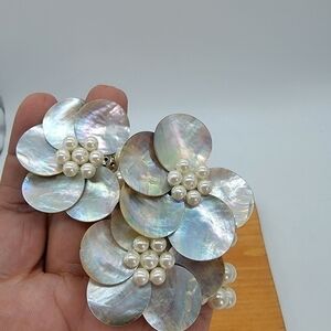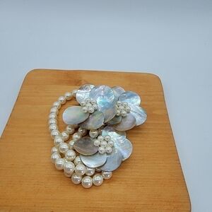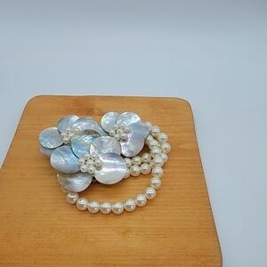 Cultured White Baroque Pearl White Shell Flower Handmade Statement bracelet. adjustable on elastic.