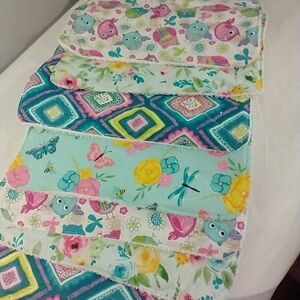 Handmade unpaper towels. reuse washer dryer safe. new. 2 of each 4 designs. butterflies, flowers, diamonds and owls. all white terry cotton backs.