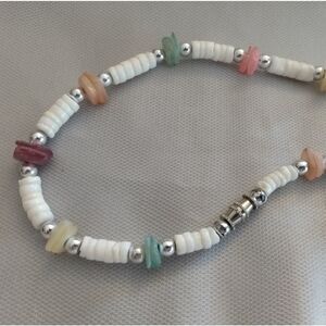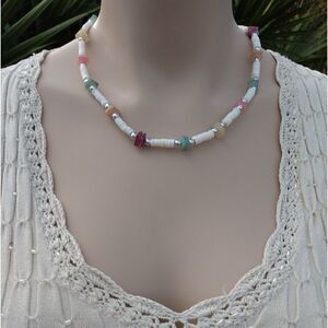 HANDMADE White and Multicolored Shell & Beaded Necklace Barrel Closure