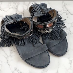 ⭕️ HANDMADE from Greece One-of-a-kind Fringe Embellished Blue Sandals