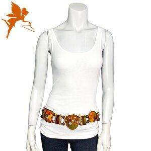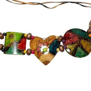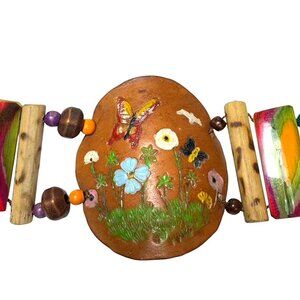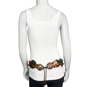 HANDPAINTED Leather, Coconut, Wood and Beaded Tie Belt