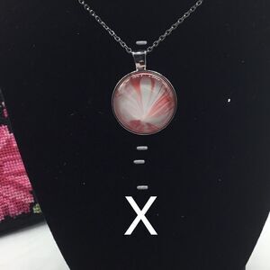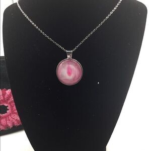 JUST IN TIME FOR VALENTINE DAY!Handcrafted necklace created with acrylic paint design with glass cabochon. measures 1”. Shade of pink may vary due to computer screen.