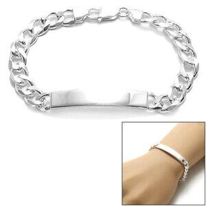 HANDSOME 8MM (220 GAUGE) STERLING SILVER CUBAN LINK ID BRACELET ENGRAVABLE PLATE
