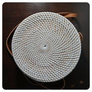 HAND-WOVEN RATTAN, ROUND CROSS-BODY BAG with HIBISCUSπΊ by COLLECTION EIGHTEEN