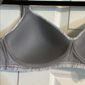 Size large Hanes gray heather wireless bra. Experience all-day comfort with this gray wireless bra, featuring wide shoulder straps and a soft, jersey-like fabric. The light padding offers a supportive yet relaxed fit, ideal for everyday wear. Its versatile color and athleisure-inspired design make it a wardrobe staple.