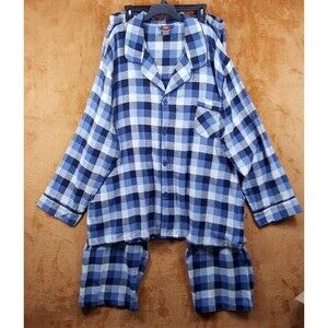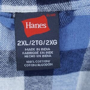 HANES Mens Pajamas Size 2XL Blue Buffalo Plaid Flannel Sleepwear PJ Set
