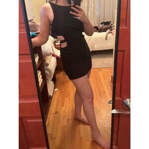 HANEY Black Banded Waist Cutouts Sleeveless Silhouette Roselyn Mini Dress Size 2