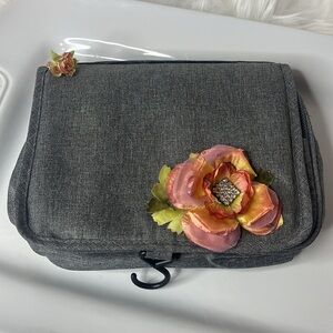 HANGING TRAVEL BAG W/Rose & Rhinestone Detail