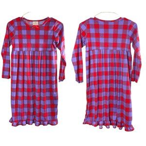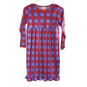 HANNA ANDERSON Girls Flannel Nightgown Size 130/8 Checker Purple Red 92-20