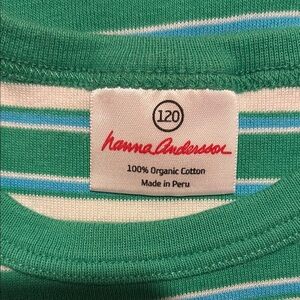 HANNA ANDERSSON BOYS TOP GREEN WHITE SHIRT TOPS SUMMER FALL CASUAL SIZE 6 7 120
