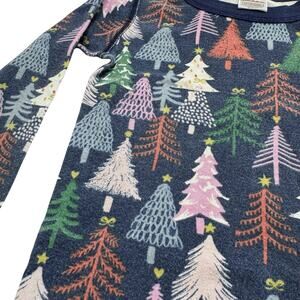 HANNA ANDERSSON Blue Holiday Trees Pajama Top Size 6-7 120 Kids Winter Muticolor
