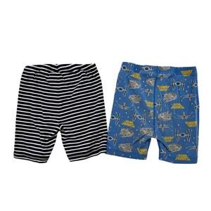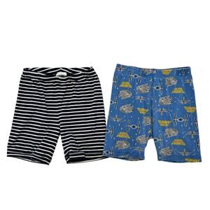 HANNA ANDERSSON & GAP Pajama Lot. Two long sleeve tops — one blue & white stripe, one Star Wars Stormtrooper gray & white stripe. Two pairs of shorts: one Gap blue & white stripe, one Hanna Andersson Star Wars print on light blue. All size 8 / 130. All 100% cotton. Very good condition with only minor signs of normal wash/wear (minor fade, small spots) — no rips or holes.