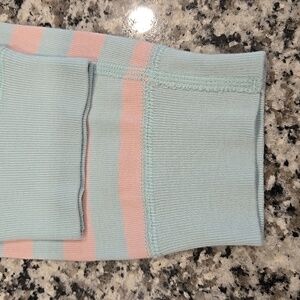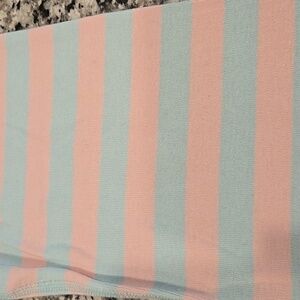 Pre-owned. Very good condition. There are 2 very minor spots on the front of the pants as shown in the pictures. Light pink and mint green stripes. Elastic waistband.