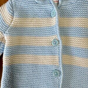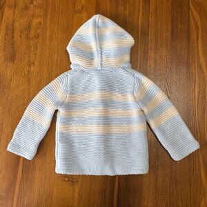 HANNA ANDERSSON Hoodie Cardigan Baby 0-3 50 Organic Cotton Blue Striped Sweater