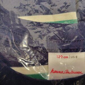 HANNA ANDERSSON Long Sleeve Colton Shirt Blue & Green Stripe - 130 (8) (NWT)