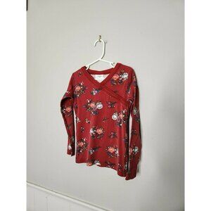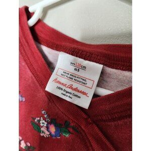 Minor wear//preowned condition. Minor fading. Red floral jammies. Size 5. BIN J