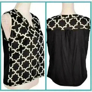 HANNA & GRACIE Woman's BLACK/WHITE Top Sleeveless Blouse Lightweight size Lg