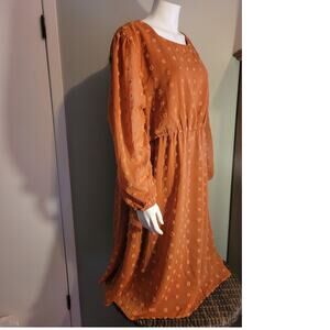 HANNA NIKOLE Terracotta Orange Maxi Dress 22W Plus Modest Boho Smocked Swiss Dot