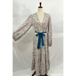HANNAH ARTWEAR Sz 3 L Iona Dress Floral Block Print Cotton Long Sleeve Midi