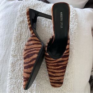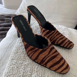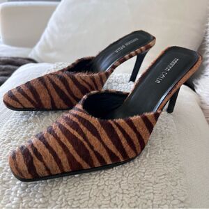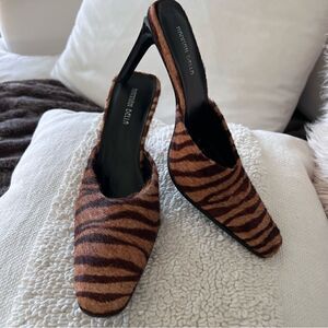 HANNAH BELLA Brown Animal Print Leather Mule Heel Shoes Size 6 Fit like a size 7