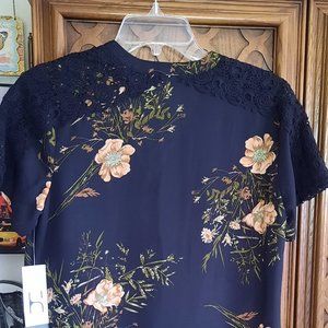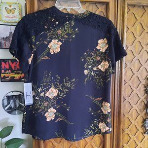 HANNAH Floral Crochet-Lace Pintuck Buttondown Blouse- NWT, Size PS