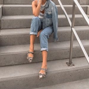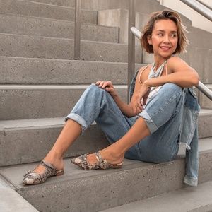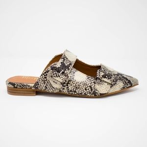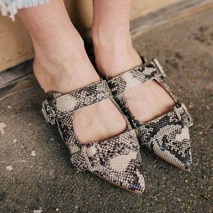 Pointed & powerful—The Hannah is a pointed toe mule inspired by a heel. A snake-printed upper accented by buckles and an open-foot design. The pointed toe peeks out perfectly from beneath tailored pants, or as an accent to a casual outfit. Finished with genuine leather wrapping on the heel, no matter how much you wear 'em, they'll be scuff free.
