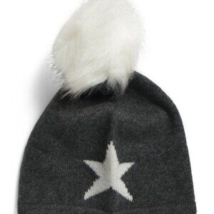 HANNAH ROSE Cashmere Star Intarsia Hat With Faux Fur Pom Size One Size