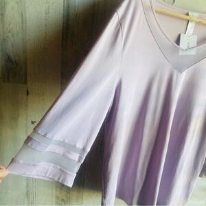 NWT HANRO Delia Pajama Top L Organic Cotton Lavender Tulle Inset Loungewear