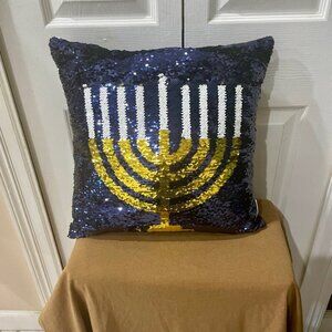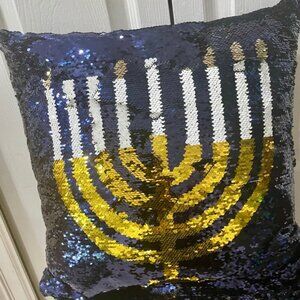 Celebrate the Festival of Lights with our exquisite Hanukkah Menorah Sequin Pillows. This set of 2 pillows, each measuring 18x18 inches, is a perfect addition to your festive decor. The pillow features a beautiful menorah design crafted with shimmering gold and white sequins against a rich, turn on lights daily by the gorgeous sequin pillow , dark background, creating a stunning visual effect that will light up any room. These pillows are made from high-quality materials to ensure durability and longevity, maintaining their excellent condition throughout the season. Ideal for adding a touch of Hanukkah spirit to your living room or bedroom, these decorative pillows are both stylish and comfortable. Whether you're hosting a Hanukkah gathering or simply want to enhance your home decor, these sequin pillows are sure to impress. Don't miss out on this delightful and unique holiday decoration!